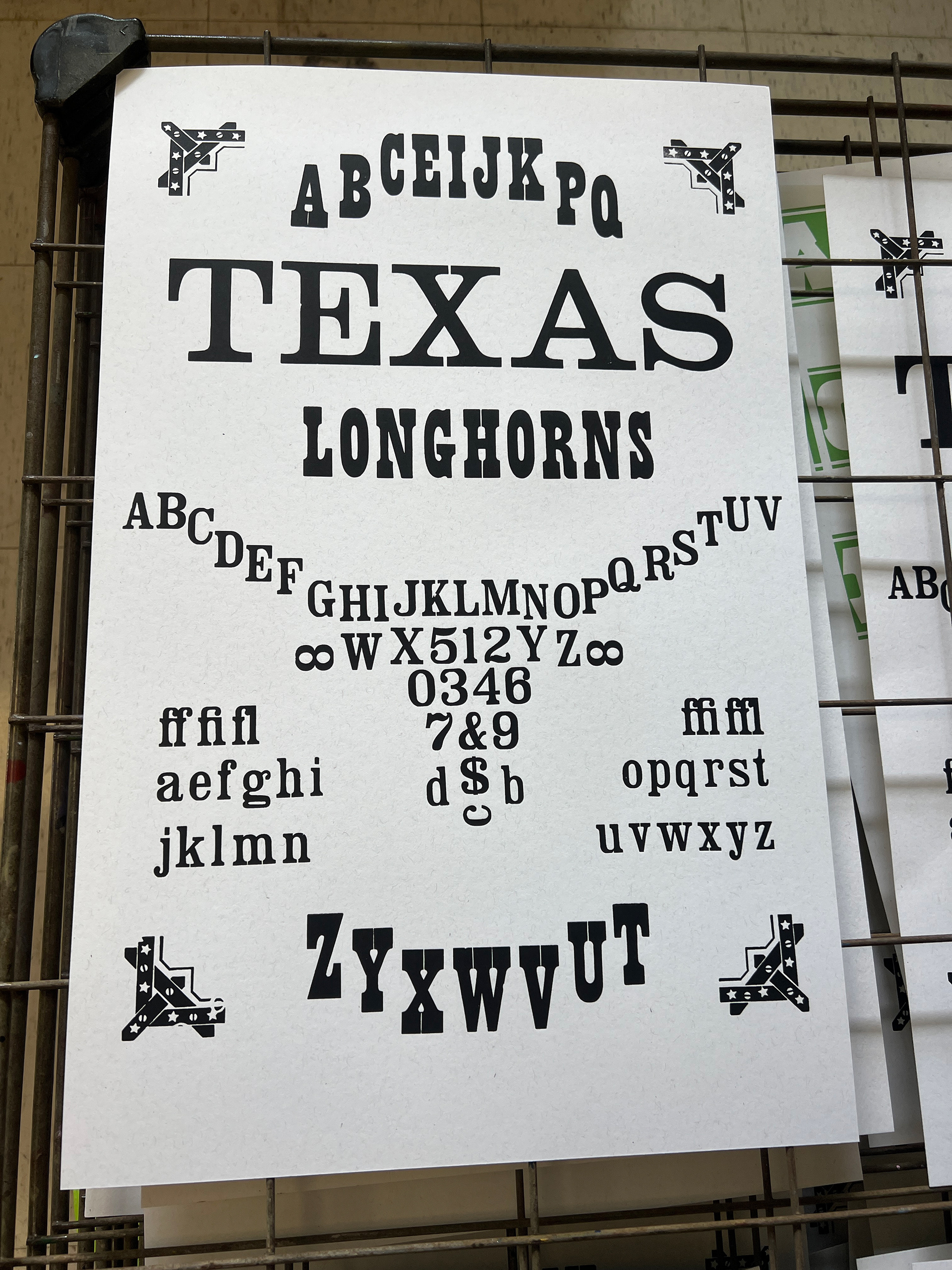 With this print, I wanted to challenge myself to arrange as many typefaces on a specimen as possible. Working with similar styles and sizes and following a strict geometric pattern allowed me to do so. The $50k is referencing the acquisition cost of the collection to the Harry Ransom center. I also wanted to explore how I could entirely fill the page without becoming overwhelming.