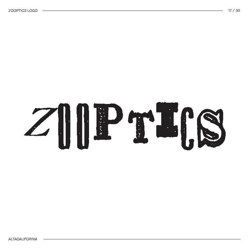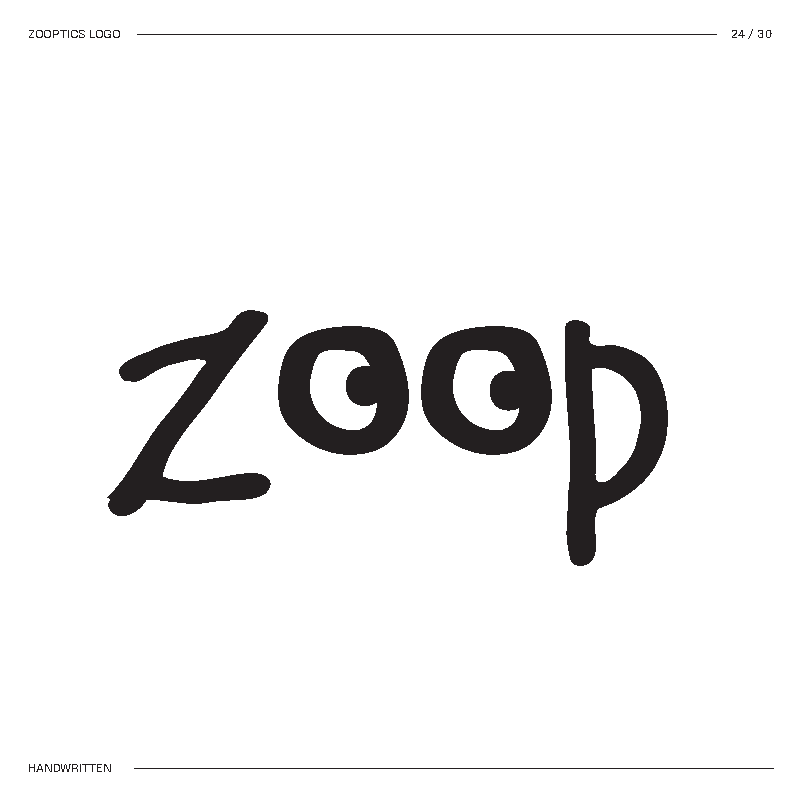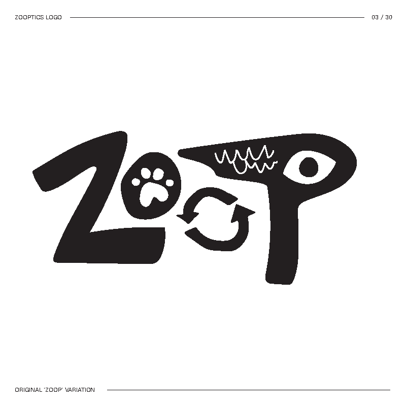 I started by brainstorming words I thought best described the concept. Then I mixed and matched until I landed on Zooptic, shortened to ZOOP.