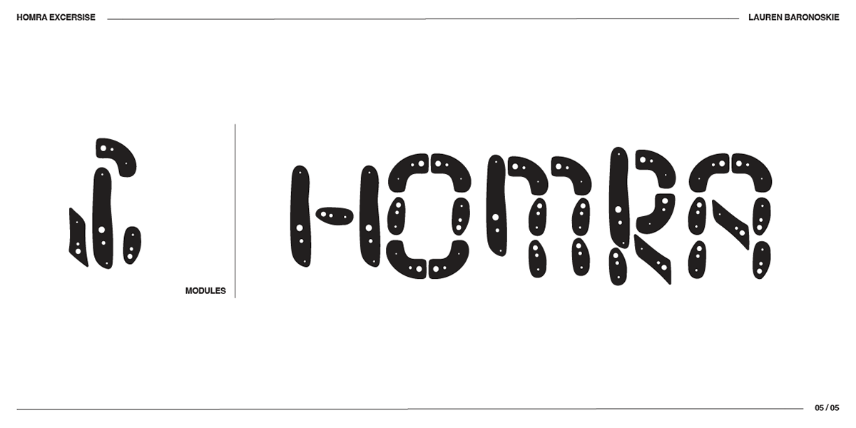 As a part of this project, we were tasked with creating a modular font to be used as a part of our game. Just like the name, it needs to captures the style, content, and framework simultaneously. To start, I began with a HOMRA exercise. The capital letters of H, O, M, R, and A use many features of typographic anatomy that is echoed in the rest of the alphabet. This was a super helpful place to start.