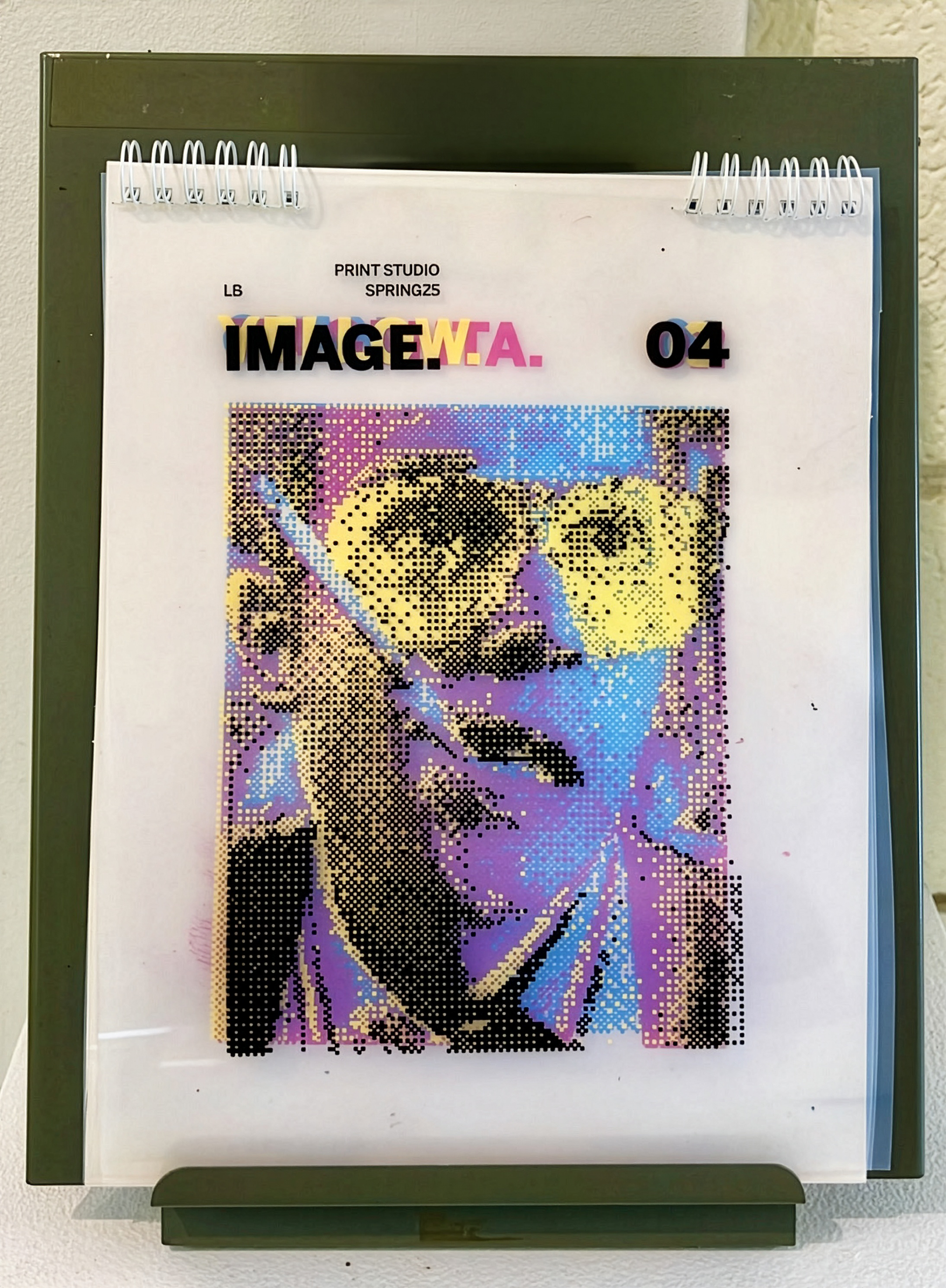 Printed each layer of CMYK on transparent polyester film & spiral bound in reverse order. 8.5x11"
