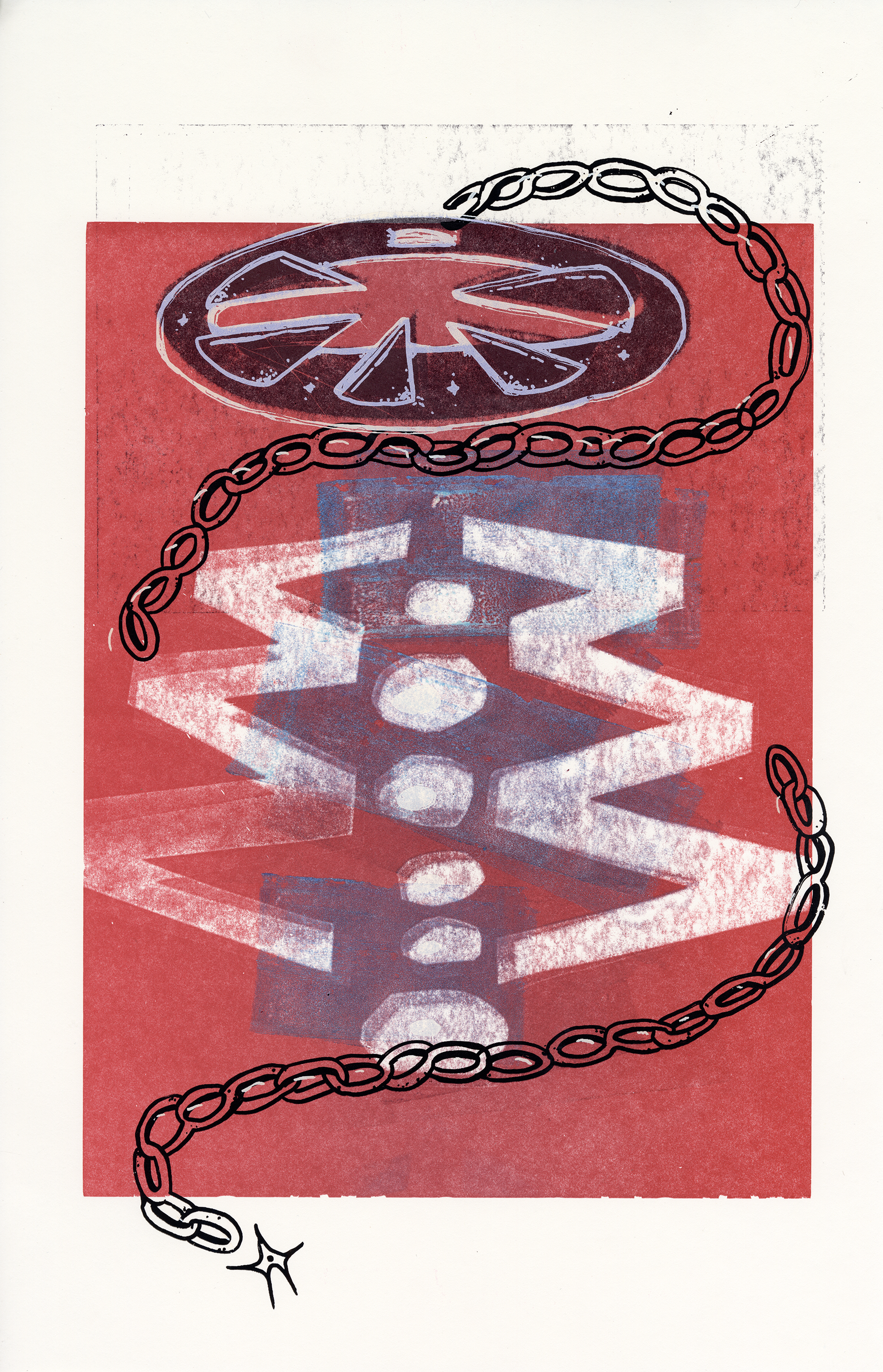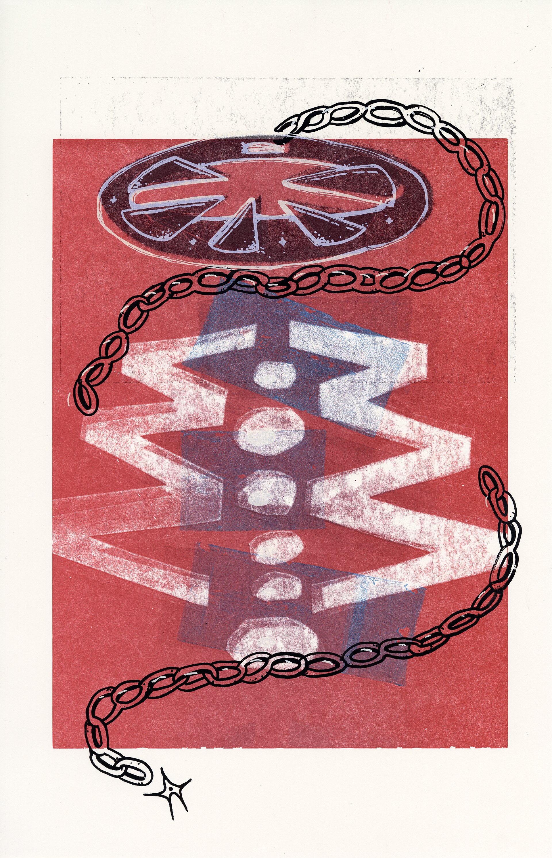 Imagining new imagery from wood type. 3 layers letterpress and 3 layers silkscreen. Final edition of 25. 8.5x11"