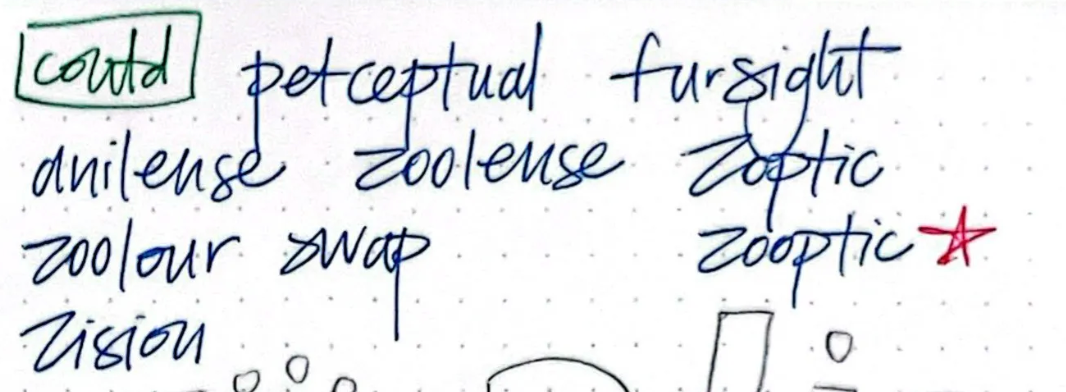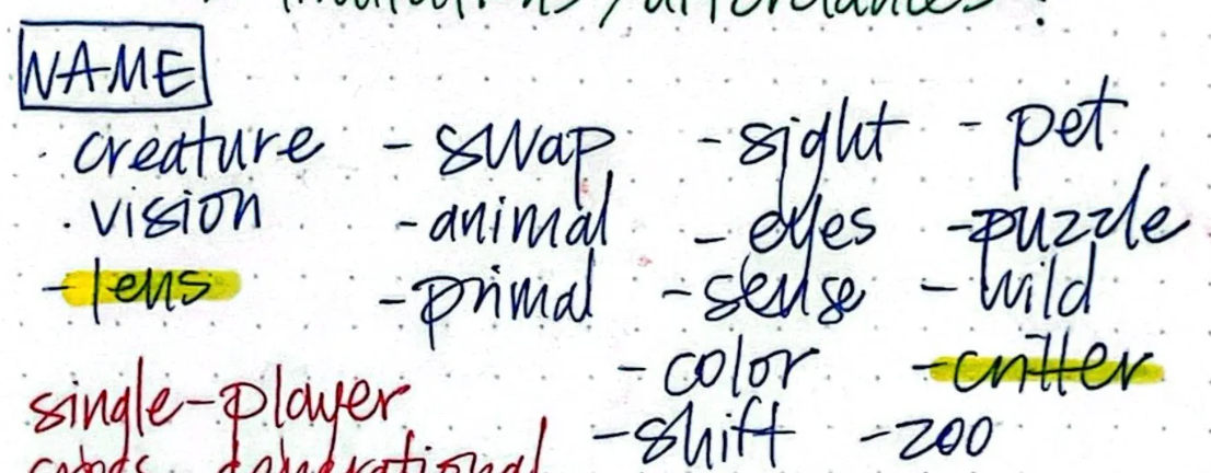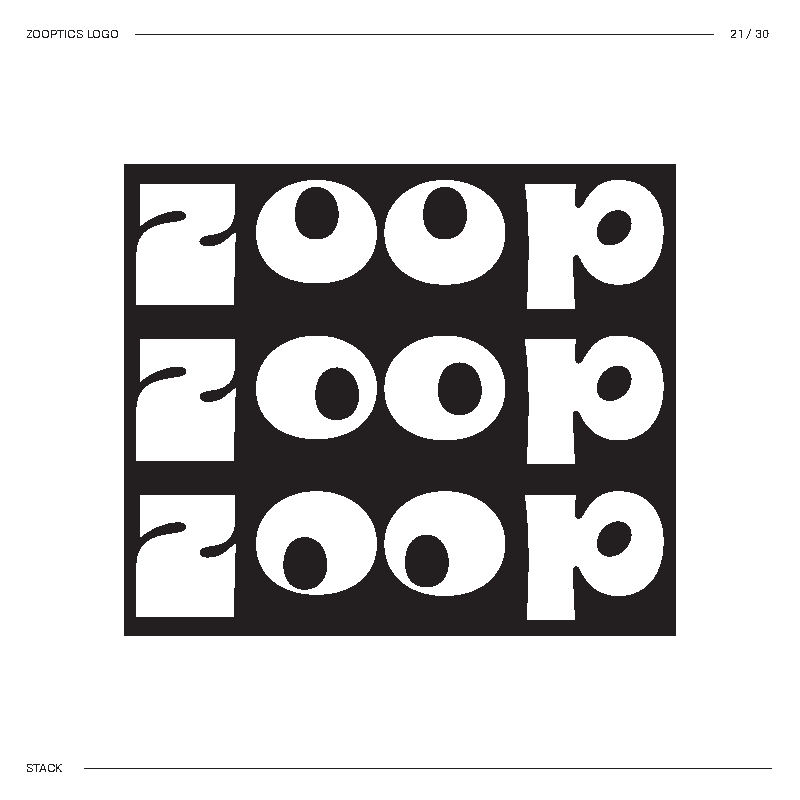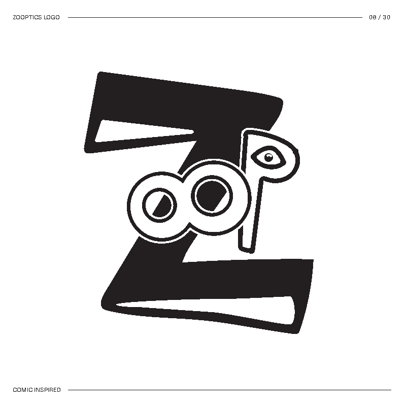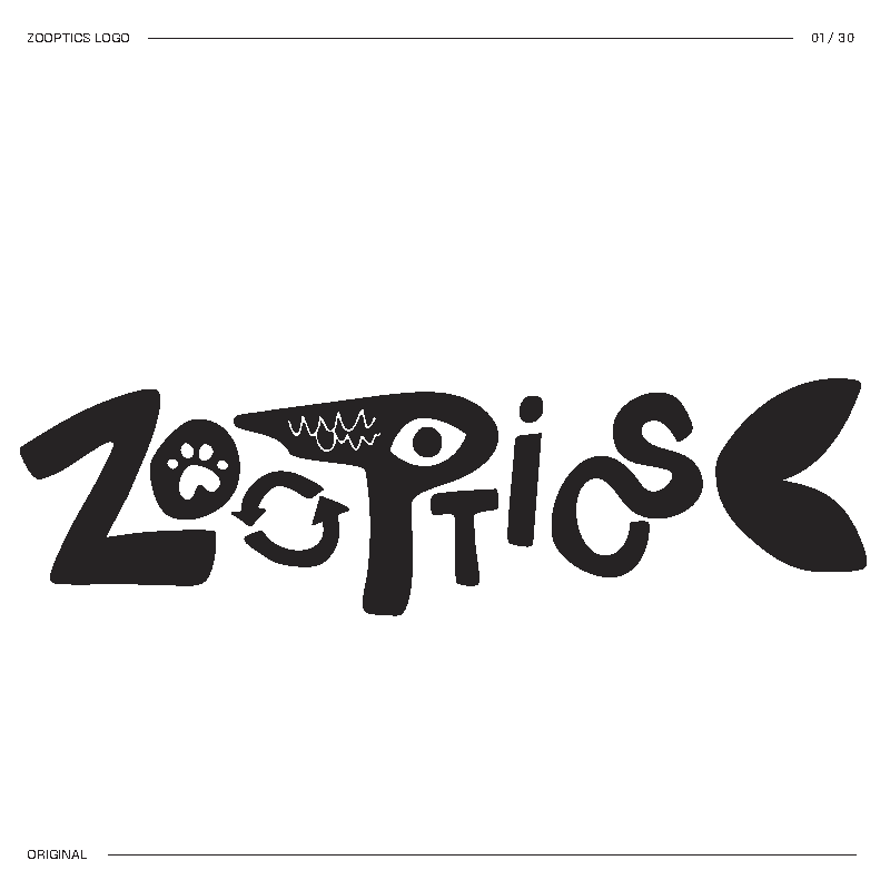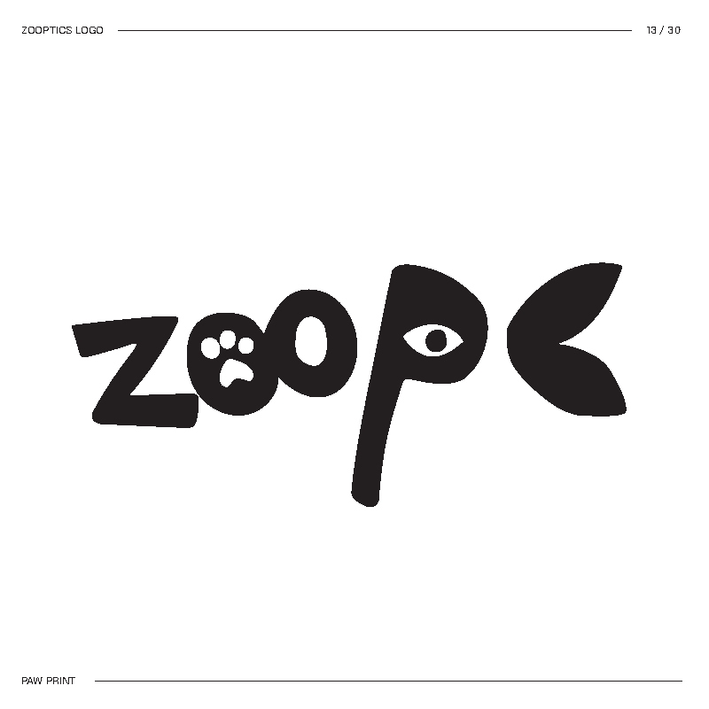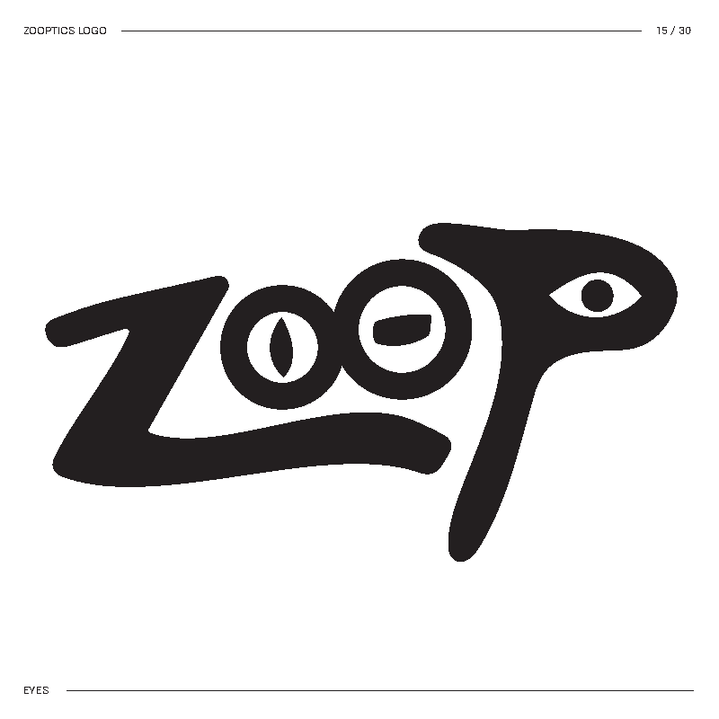 I started by brainstorming words I thought best described the concept. Then I mixed and matched until I landed on Zooptic, shortened to ZOOP.