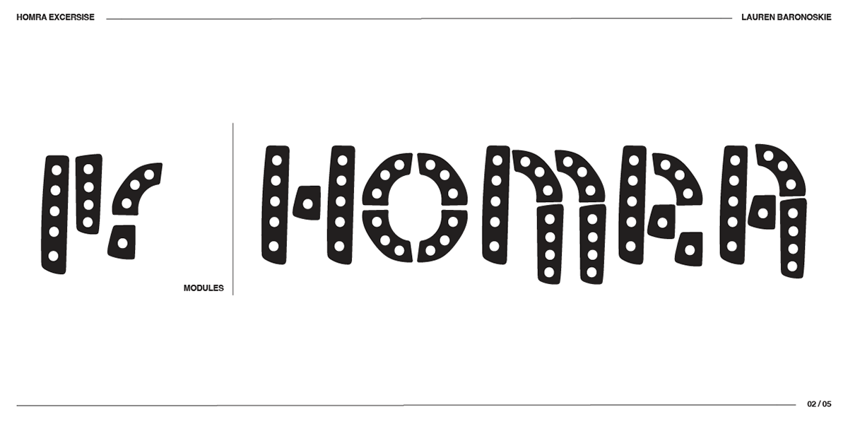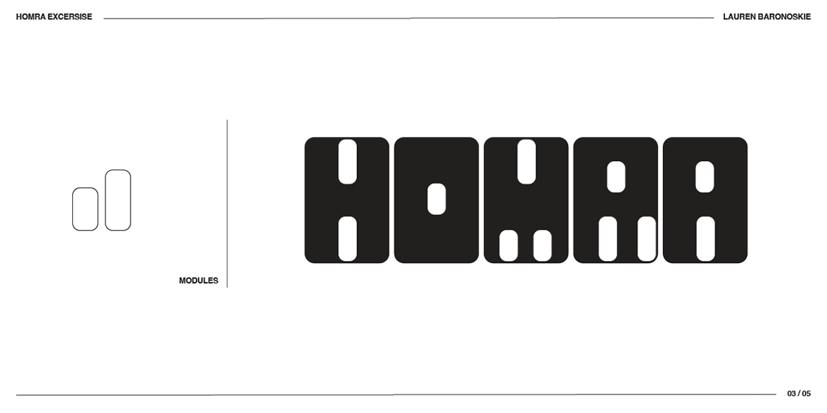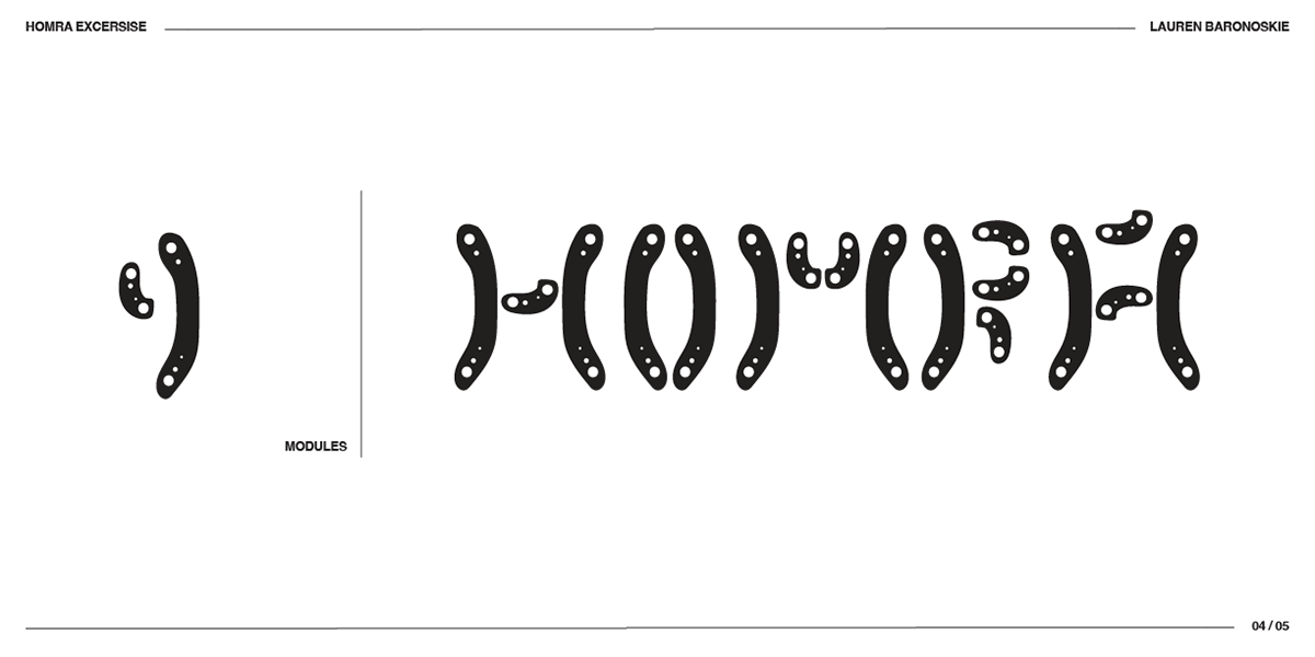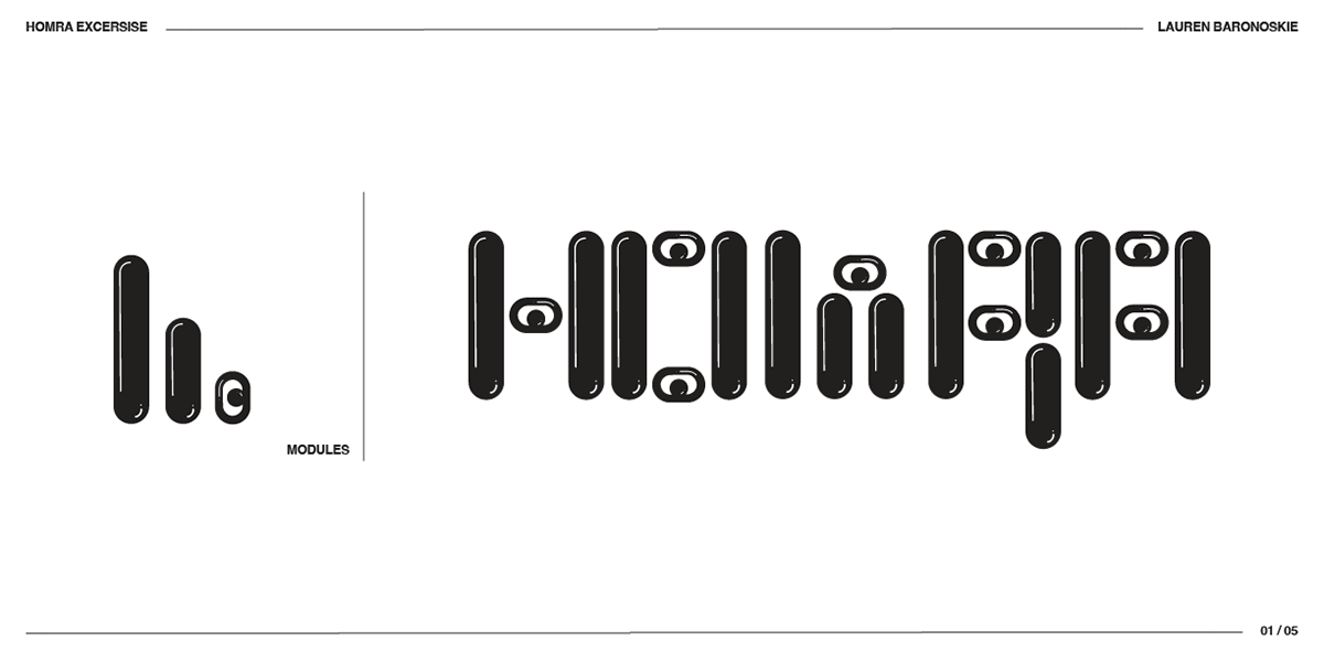 As a part of this project, we were tasked with creating a modular font to be used as a part of our game. Just like the name, it needs to captures the style, content, and framework simultaneously. To start, I began with a HOMRA exercise. The capital letters of H, O, M, R, and A use many features of typographic anatomy that is echoed in the rest of the alphabet. This was a super helpful place to start.